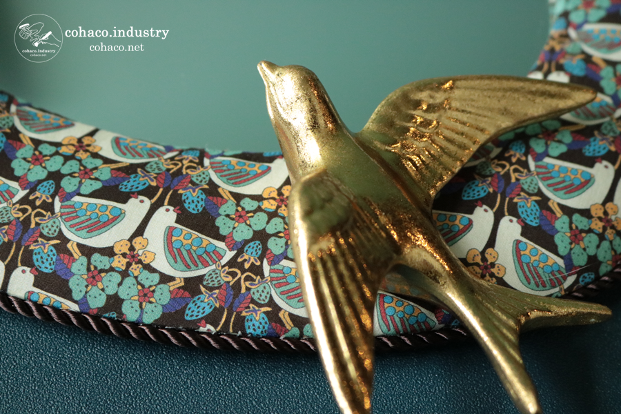 先日、ふと立ち寄った雑貨屋さんで鳥の飾りを見つけ、頭の中でパタパタパタと色々なピースが繋がり、温め続けた生地がついにこのウォールミラーとなりました!