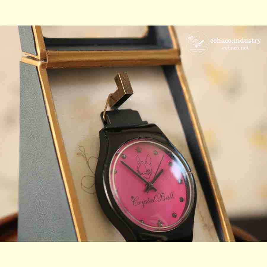 それでも時計としては問題なく使えるので処分する気になれず、懐中時計風に掛けて使う事に。