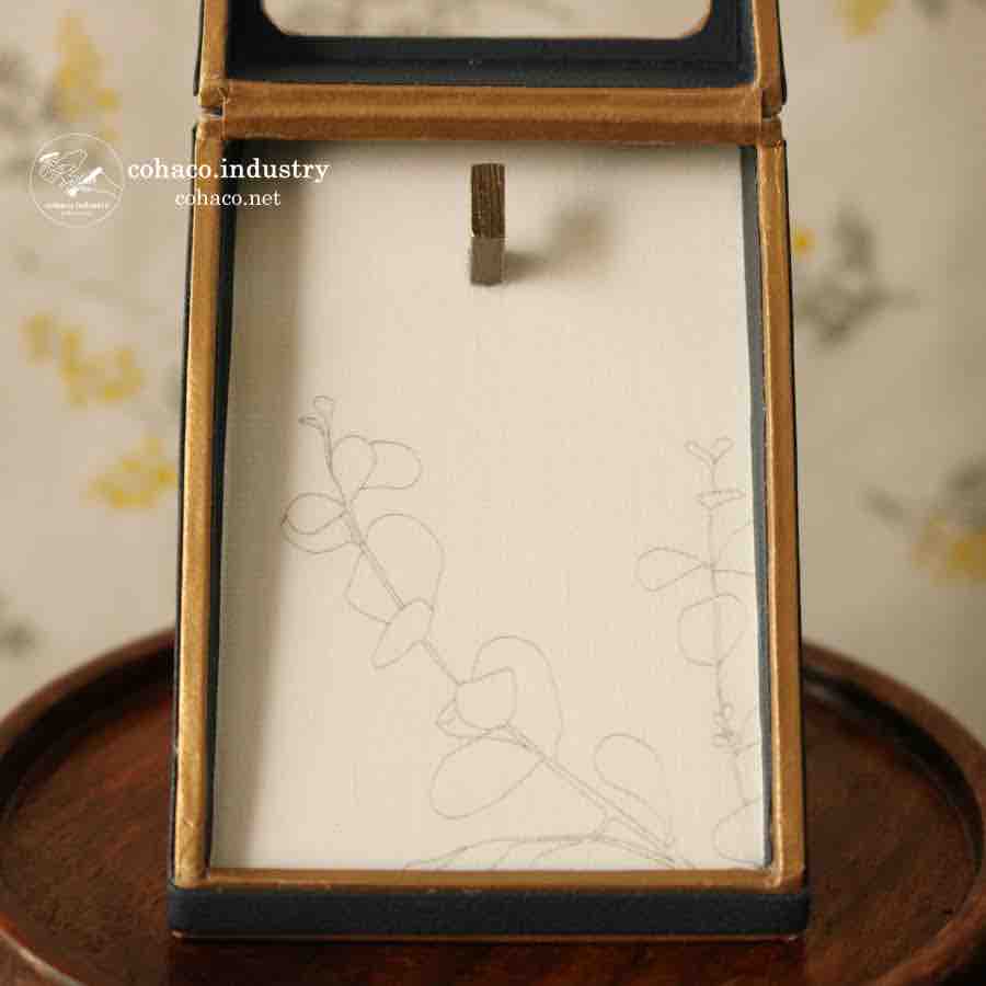 閉じたとき、開けたとき、共にゴールドの縁取りがピッタリと合わさるのが最高に気持ちの良い作品です。